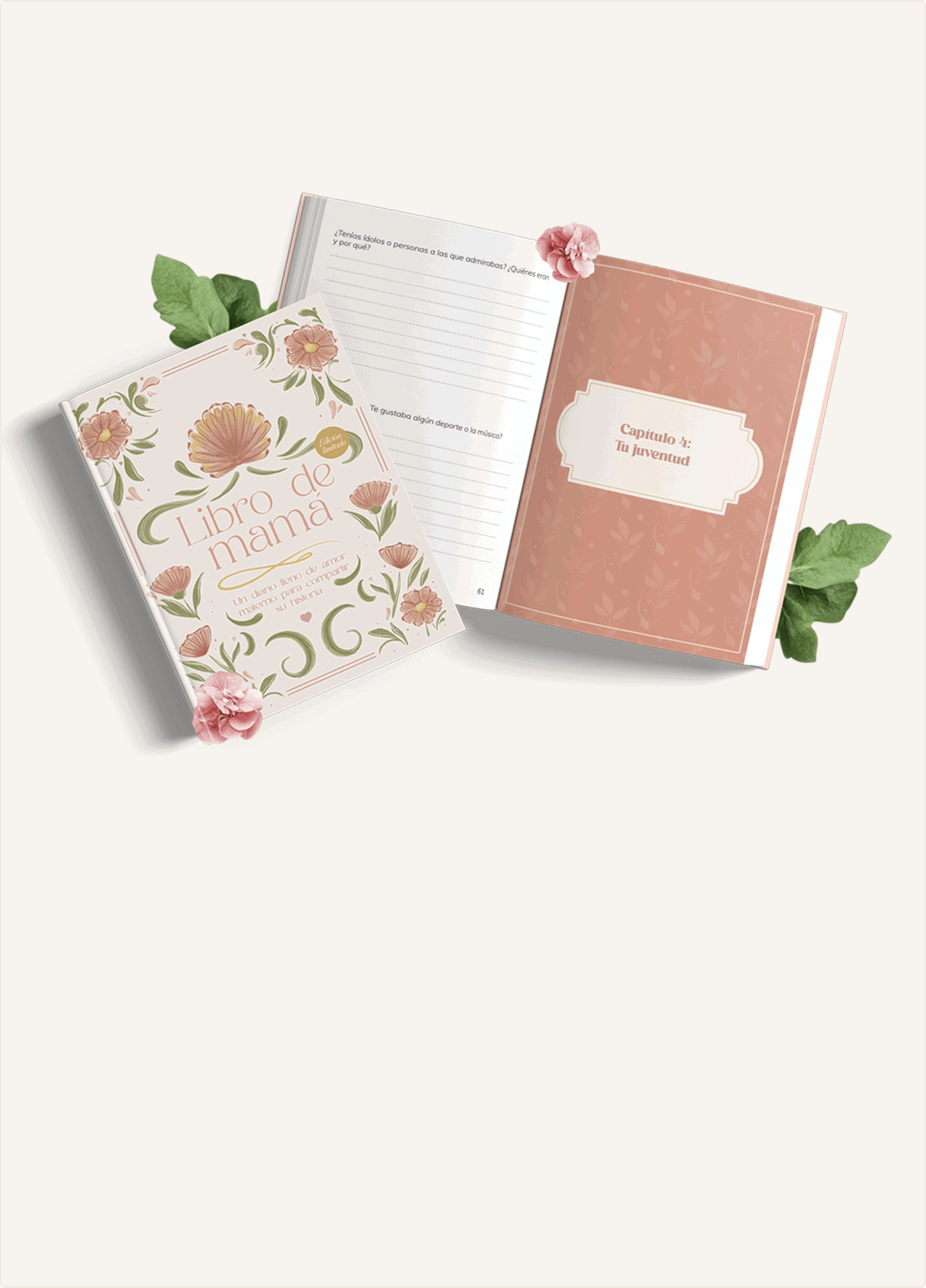 El Libro de Mamá le da un espacio para escribir su historia, emociones y consejos, creando un legado familiar que podrás atesorar por siempre.